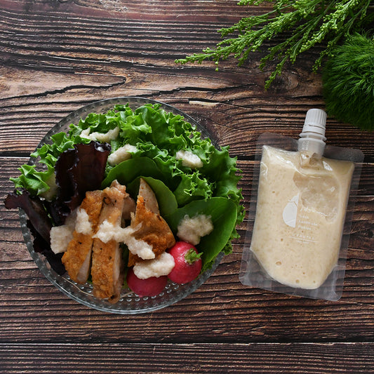 泉州玉ねぎの美味しさを存分に活かし、その泉州玉ねぎをベースにに国産野菜を50%以上使用し、安心安全な保存料・香料・化学調味料・合成着色料無添加のドレッシング。