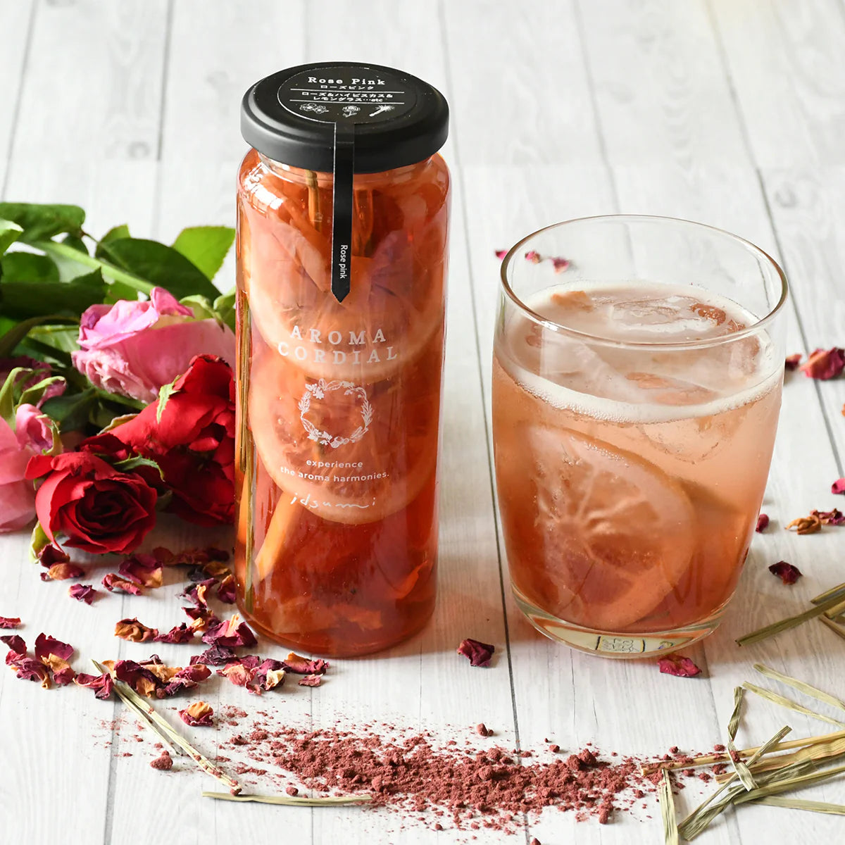 お好みのお酒と炭酸で割っていただくと心もときめく美しいローズサワーが完成します!