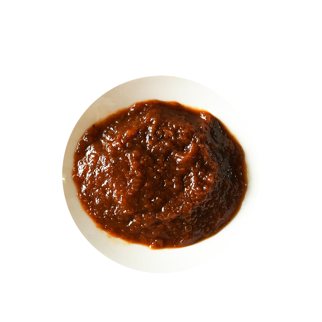 ●原材料名:トマトホール缶、赤ワイン、玉ねぎ、りんご、砂糖類(グラニュー糖、粗糖)、醤油((大豆)(分別生産流通管理済み)・小麦を含む)、食塩、りんご酢、食用オリーブ油、プルーン、にんにく、生姜、(オールスパイス、カイエンペッパー、クローブ、混合香辛料)