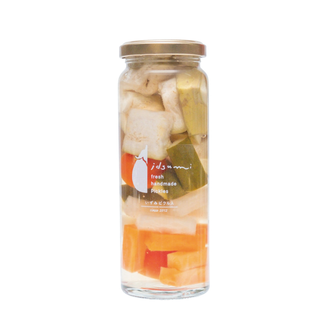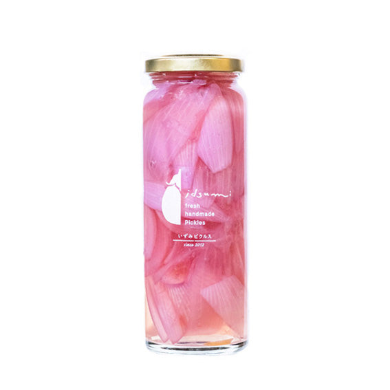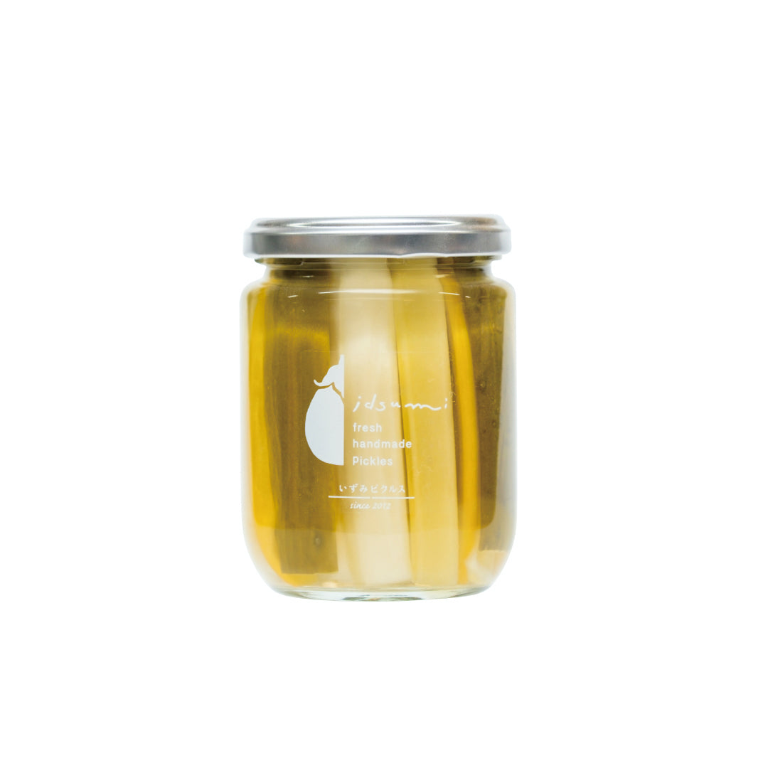 idsumiの「水なすピクルス」は大阪泉州地域特産の水なす使用しています。灰汁が無く、フルーティでみずみずしいので生で食べてもおいしい水なすです。 そんな泉州の水なすをダシの効いた和風味と、レモンの風味が爽やかな洋風味でピクルスを作りました。日本のお漬物のようなマイルドな塩味と酸味なので、ピクルスが苦手な方でもサラダ感覚でパクパク食べられます。 大阪といえば天下の台所として有名ですが、その食文化を支えてきたのが泉州の農作物でした。良質な水、土質、そして温暖な気候に恵まれ古くから農業が盛んな土地柄です。 野菜名人たちが丹精込めて作った絶品の水なすを、日本人の味覚に合うように研究に研究を重ねて開発されたイズミのピクルスを是非お試しください。