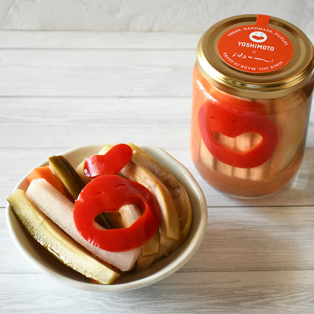 idsumiの「水なすピクルス」は大阪泉州地域特産の水なす使用しています。灰汁が無く、フルーティでみずみずしいので生で食べてもおいしい水なすです。 そんな泉州の水なすをダシの効いた和風味と、レモンの風味が爽やかな洋風味でピクルスを作りました。日本のお漬物のようなマイルドな塩味と酸味なので、ピクルスが苦手な方でもサラダ感覚でパクパク食べられます。 大阪といえば天下の台所として有名ですが、その食文化を支えてきたのが泉州の農作物でした。良質な水、土質、そして温暖な気候に恵まれ古くから農業が盛んな土地柄です。 野菜名人たちが丹精込めて作った絶品の水なすを、日本人の味覚に合うように研究に研究を重ねて開発されたイズミのピクルスを是非お試しください。