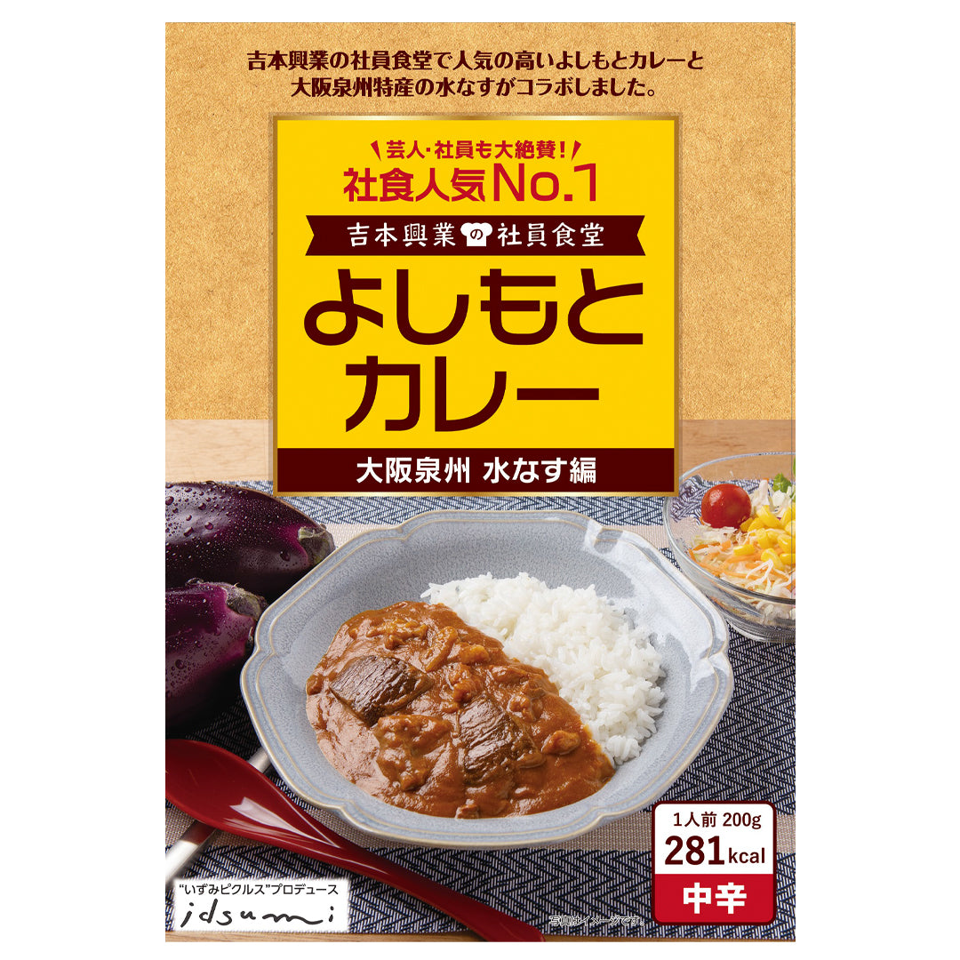 吉本興業東京本部の社員食堂で最も人気の高いメニュー「よしもとカレー」と、大阪府 泉州の地域食材「水なす」のコラボレーション商品『よしもとカレー 大阪泉州 水なす編』 が完成