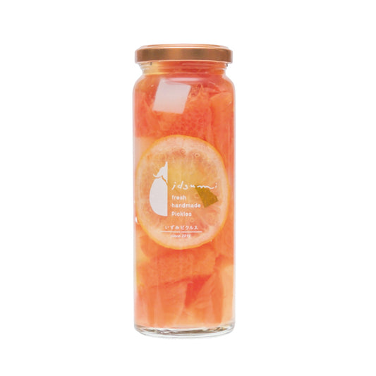 idsumiの「水なすピクルス」は大阪泉州地域特産の水なす使用しています。灰汁が無く、フルーティでみずみずしいので生で食べてもおいしい水なすです。 そんな泉州の水なすをダシの効いた和風味と、レモンの風味が爽やかな洋風味でピクルスを作りました。日本のお漬物のようなマイルドな塩味と酸味なので、ピクルスが苦手な方でもサラダ感覚でパクパク食べられます。 大阪といえば天下の台所として有名ですが、その食文化を支えてきたのが泉州の農作物でした。良質な水、土質、そして温暖な気候に恵まれ古くから農業が盛んな土地柄です。 野菜名人たちが丹精込めて作った絶品の水なすを、日本人の味覚に合うように研究に研究を重ねて開発されたイズミのピクルスを是非お試しください。